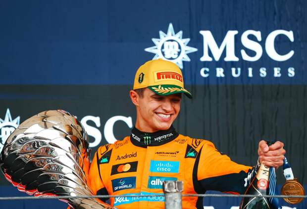 Напомним, за три этапа до конца сезона британец лидирует в личном зачёте с преимуществом в 24 балла над собственным напарником по McLaren австралийцем Оскаром Пиастри.