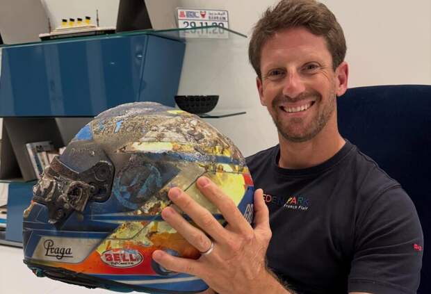 Бывший гонщик Формулы 1 Ромен Грожан спустя почти пять лет после страшной аварии на Гран При Бахрейна 2020 года, когда француз на первом круге врезался в отбойник, из-за чего машина разбилась надвое и загорелась, получил шлем, который был на нём в тот момент.