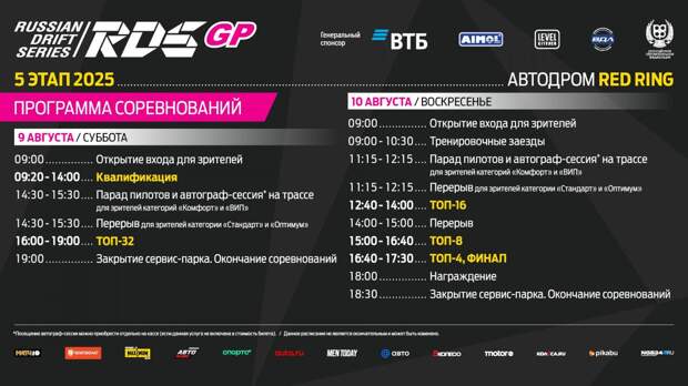 Следить за событиями на трассе можно будет как с трибун автодрома «Красное кольцо», так и в прямом эфире на платформе RDS TV — квалификационные заезды можно посмотреть бесплатно после регистрации, а парные заезды будут доступны по подписке.