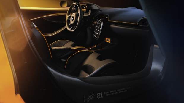 Интерьер отделан чёрной кожей и алькантарой с оранжевыми элементами — нитью прострочки, вышитыми числами «10» и десятью звёздами. В салоне можно найти упоминания всех выигранных квалификаций, побед в Гран-при и быстрых кругов в течение сезона-2025. На порогах размещены списки успехов британца Ландо Норриса, ставшего чемпионом мира, и австралийца Оскара Пиастри, а также их автографы.